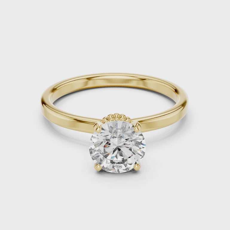 Drawing inspiration from the light and fragile beauty of flowers, the Aurielle Bloom Solitaire Diamond Ring has been crafted to capture beauty in its pristine elements. The setting effortlessly raises the diamond, just like a blooming flower, to allow the light to pass through it.