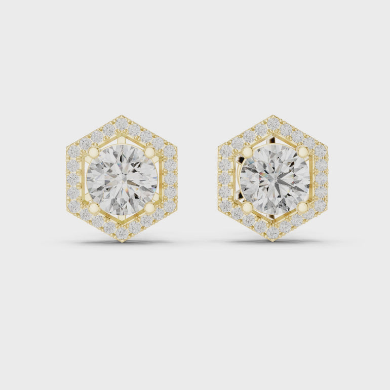 Elevate your elegance with our stunning 3ct Lab Grown Diamond Hexagon Earrings, designed for those who appreciate geometric beauty and radiant sparkle. Crafted with precision, each earring features a captivating 2.5ct center stone and meticulously set 0.48ct side stones, creating a bold and luxurious statement piece.