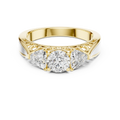 This 1.02ct lab grown diamond ring showcases a sophisticated blend of round and trillion cut diamonds set in a yellow gold band. The lab grown diamonds offer brilliant sparkle with ethical assurance and sustainable sourcing. The combination of cuts enhances light reflection, creating dynamic brilliance and a distinctive visual appeal. Expertly crafted, this ring balances modern design with enduring elegance, making it a refined choice for those seeking both quality and conscious luxury.
